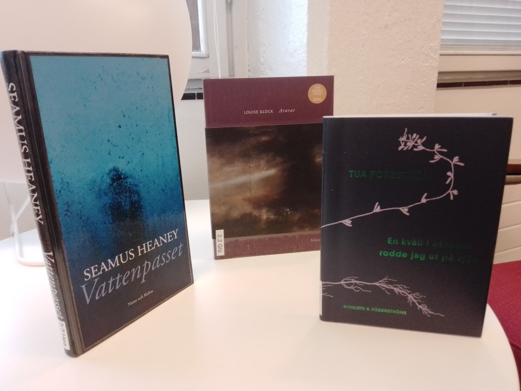 Södra Haga har förövrigt ett lite större bibliotek än Norra Haga och som jag förstått det finns det även mer svenskspråkiga i detta område. Poesihyllan som jag rannsakat är till större delen fylld av finlandssvensk poesi, med några få undantag. Trots avsaknaden av ett större utbud av poesi från Sverige, så glädjer jag mig över godingar som dessa på hyllan: