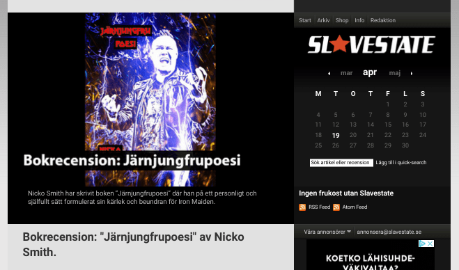 Så skriver bland annat recensenten Lars Ekenryd på Slavestate om Järnjungfrupoesi.