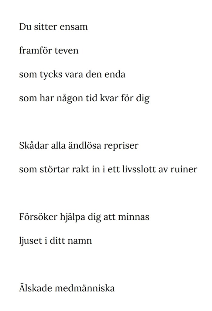 Trevlig läsning och en riktigt fin helg önskar jag er alla! (Diktsamlingen finns bland annat att beställa via http://www.boklund.fi (Finland) och Adlibris (Sverige) ifall ni vill läsa mer av den.