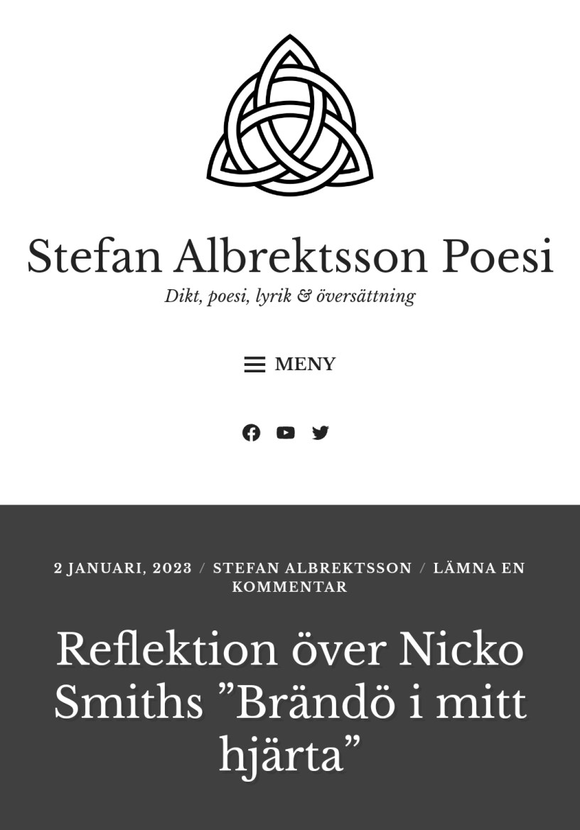 Poeten Stefan Albrektsson från Halmstad skriver bland annat följande om Brändö i mitt hjärta på sin hemsida: