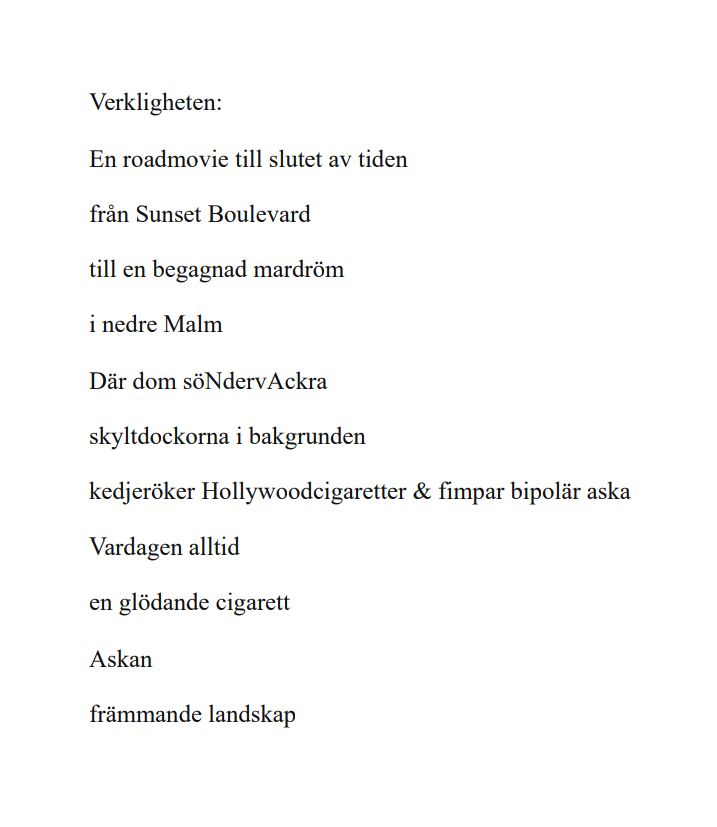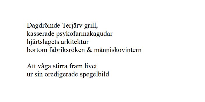 Tänkte bjuda på ett par dikter här från diktsamligen i fråga: