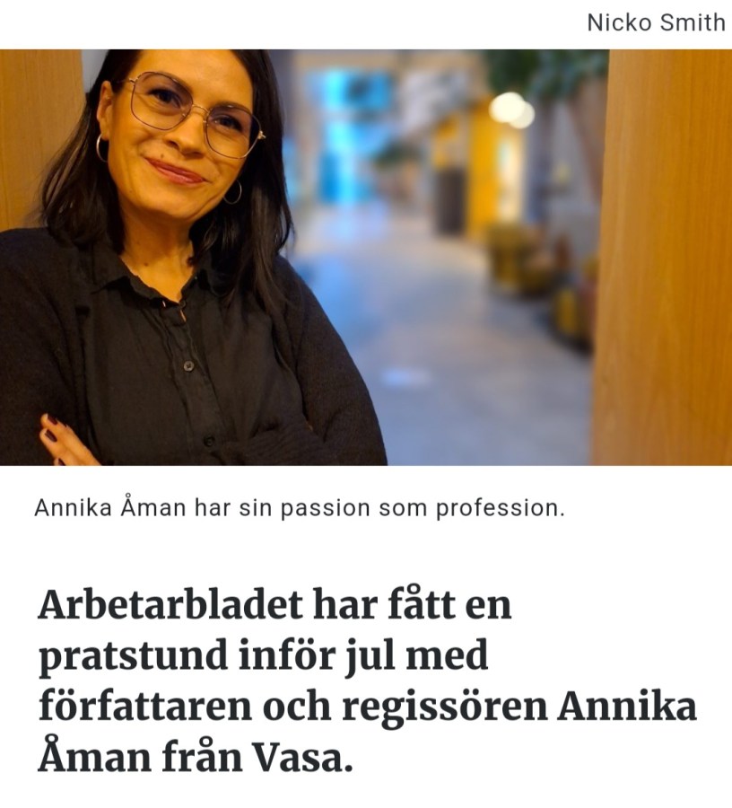 Här kan ni läsa en intervju som jag nyligen gjort med författaren Annika Åman från Vasa till Finländska Arbetarbladet.