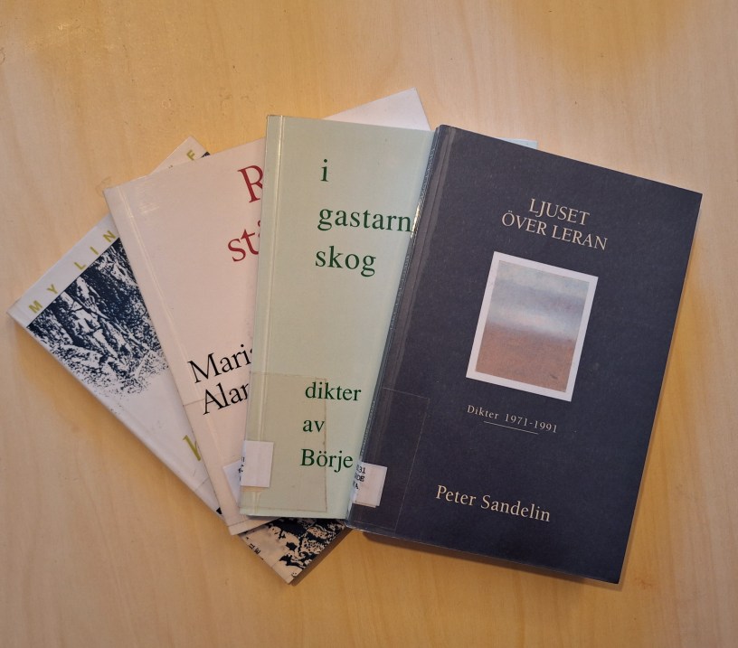 – Sparsamt. Men Tomas Tranströmer ligger alltid framme och det blir någon rad varje vecka. Annars återvänder jag emellanåt till Tua Forsström, Bruno K. Öijer och Lars Norén i bokhyllan. Eller till texter av rockpoeten Joakim Thåström. Liksom Lustans Lakejer (svenskt 80-tals synthpopband med hög igenkänningsfaktor vad gäller tiden för min diktsamling). Idag hittar jag poesin i skogen som jag omges av, men vill gärna utöka den läsbara!