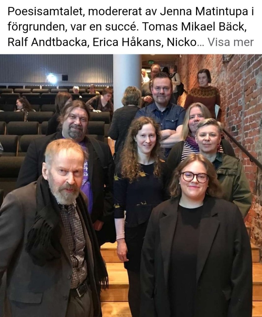 Som pricken över i:et avslutades diskussionen med högläsning av nyskriven poesi av Ralf Andtbacka och Eva-Stina Byggmästar. Mycket uppskattat av undertecknad och tillsynes resten av publiken.