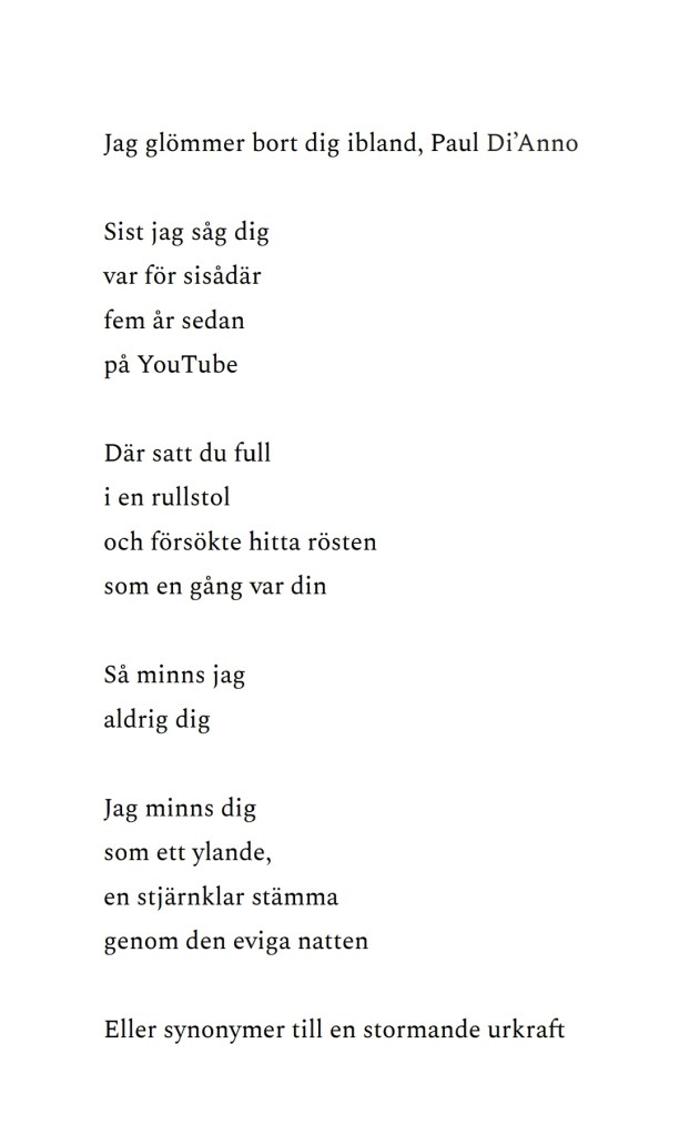 Jag vill därefter dela med mig en dikt från min diktsamling Järnjungfrupoesi som handlar om just honom: