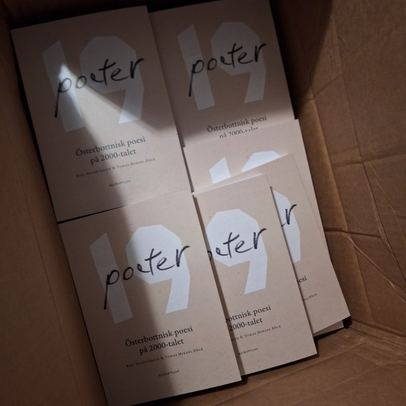 Äntligen efter så extremt mycket arbete har 19 Poeter anlänt och kan kan köpas redan på på bokmässan i Helsingfors där jag, Tomas Mikael Bäck och Jan-Christer Wahlbeck ska prata om boken och österbottnisk poesi på 2000-talet kl. 17.30-18.00 på lördagen den 26:e oktober.