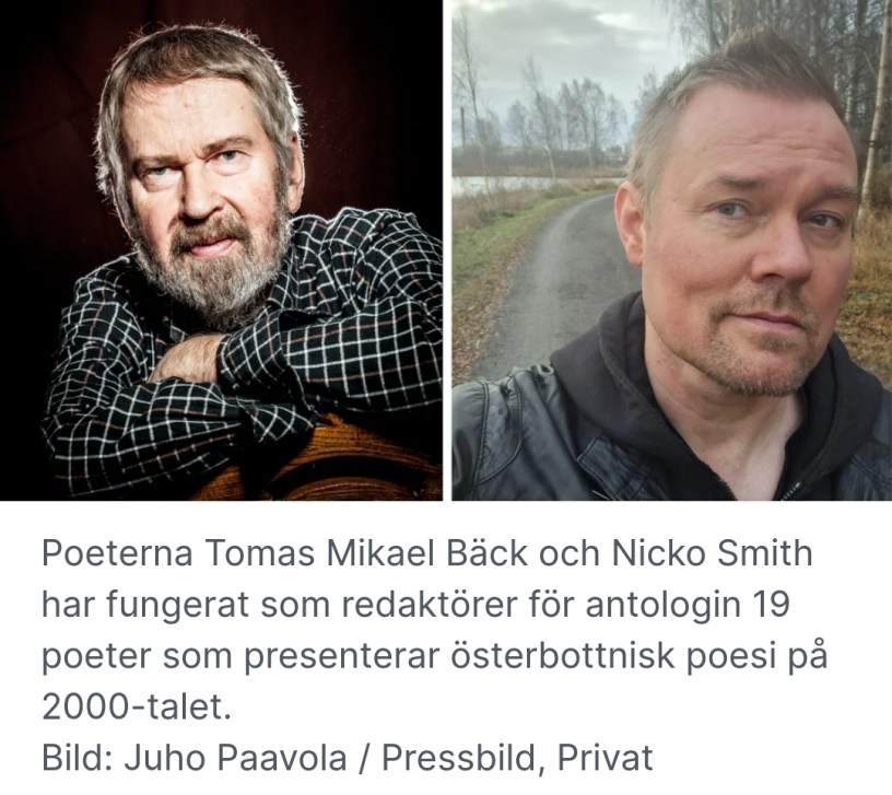 ”19 poeter väcker lust att läsa en ännu mer omfattande samtida österbottnisk diktantologi. Kanske en där döda och nulevande 2000-talsdiktare kunde visa den imponerande bredden av svensk dikt i Österbotten under detta sekel, från och med Lars Huldén, Inga-Britt Wik och Gösta Ågren.
