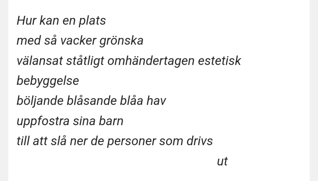 Del 3: Sophia Lundström: https://nickopoet.com/2024/04/10/vilken-var-den-senaste-diktsamlingen-som-du-laste-och-vad-tyckte-du-om-den-2-sophia-lundstrom/