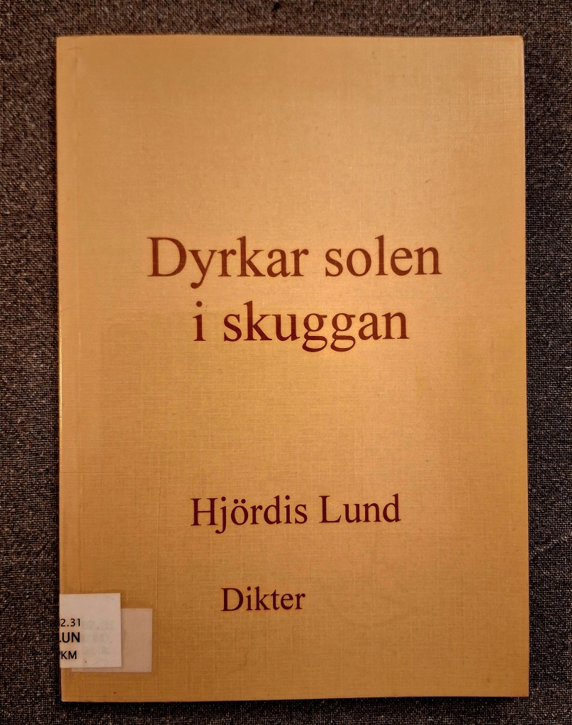 Den andra diktsamlingen jag har läst från 1998 är Dyrkar solen i skuggan (Författarnas andelslag) av Hjördis Lund (Född 1936 i Forsby, Pedersöre och flyttade senare till Jakobstad.)